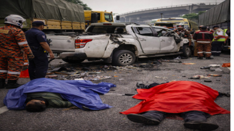 কুয়ালালামপুরে তিন লরি ও একটি পিকআপের ত্রৈমুখী সংঘর্ষে বাংলাদেশিসহ ২ জন নিহত।