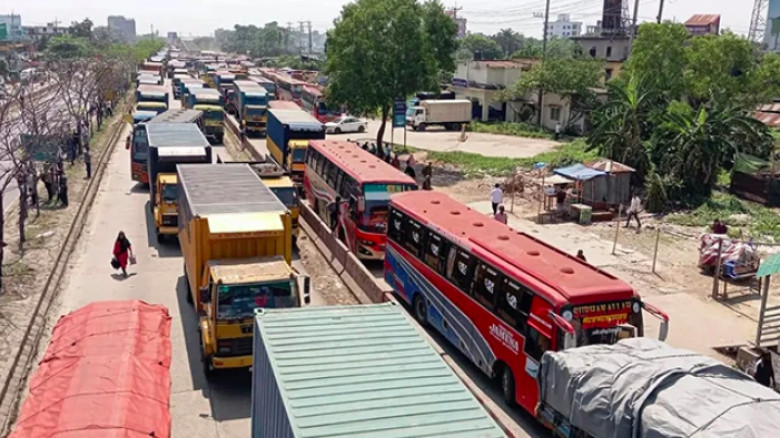 বকেয়া বেতন-ভাতার দাবিতে শ্রমিকদের ঢাকা-চট্টগ্রাম মহাসড়ক অবরোধ।