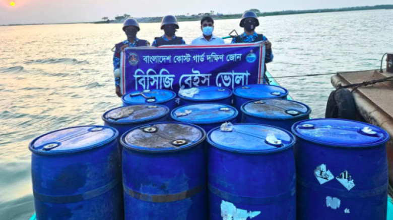 ভোলায় জ্বালানি পাচারকালে ৪২০০ লিটার তেল জব্দ।
