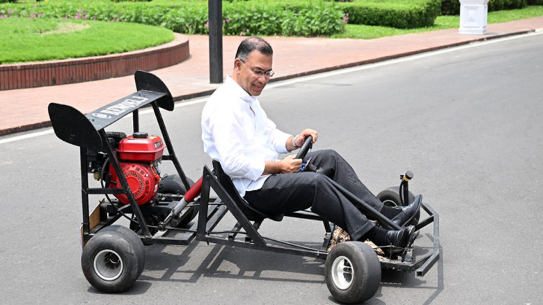 শিক্ষার্থীর তৈরি গো-কার্ট চালালেন প্রধানমন্ত্রী।