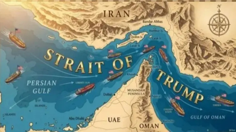 হরমুজ প্রণালি ঘিরে উত্তেজনার মধ্যেই নতুন বিতর্কে জড়ালেন যুক্তরাষ্ট্রের প্রেসিডেন্ট ডোনাল্ড ট্রাম্প। বিশ্ব বাণিজ্যের গুরুত্বপূর্ণ এই জলপথের নাম পরিবর্তন করে তিনি ‘স্ট্রেইট অব ট্রাম্প’ বা ‘ট্রাম্প প্রণালি’ হিসেবে উল্লেখ করে একটি পরিবর্তিত মানচিত্র প্রকাশ করেছেন।