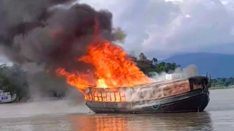 সুনামগঞ্জে হাওরগামী হাউসবোটে আগুন।...