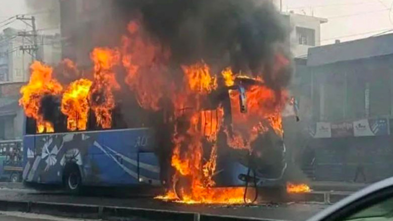 গাজীপুরে বাস–মোটরসাইকেল সংঘর্ষে যাত্রীবাহী বাসে আগুন।...