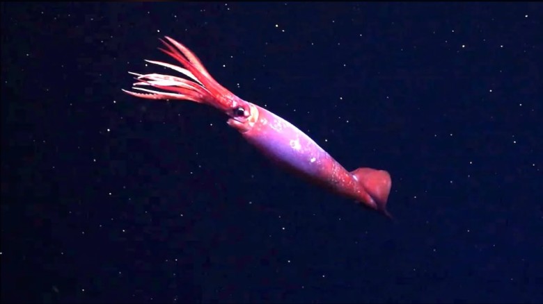 অ্যান্টার্কটিকার গভীর সমুদ্রে জীবিত লাল স্কুইডের ব...