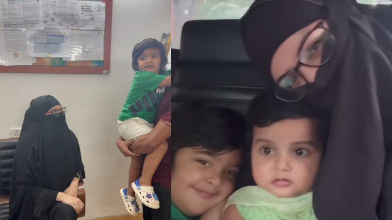 বোরকা পরে সন্তানদের টিকা দেওয়ার জন্য হাসপাতালে পর...